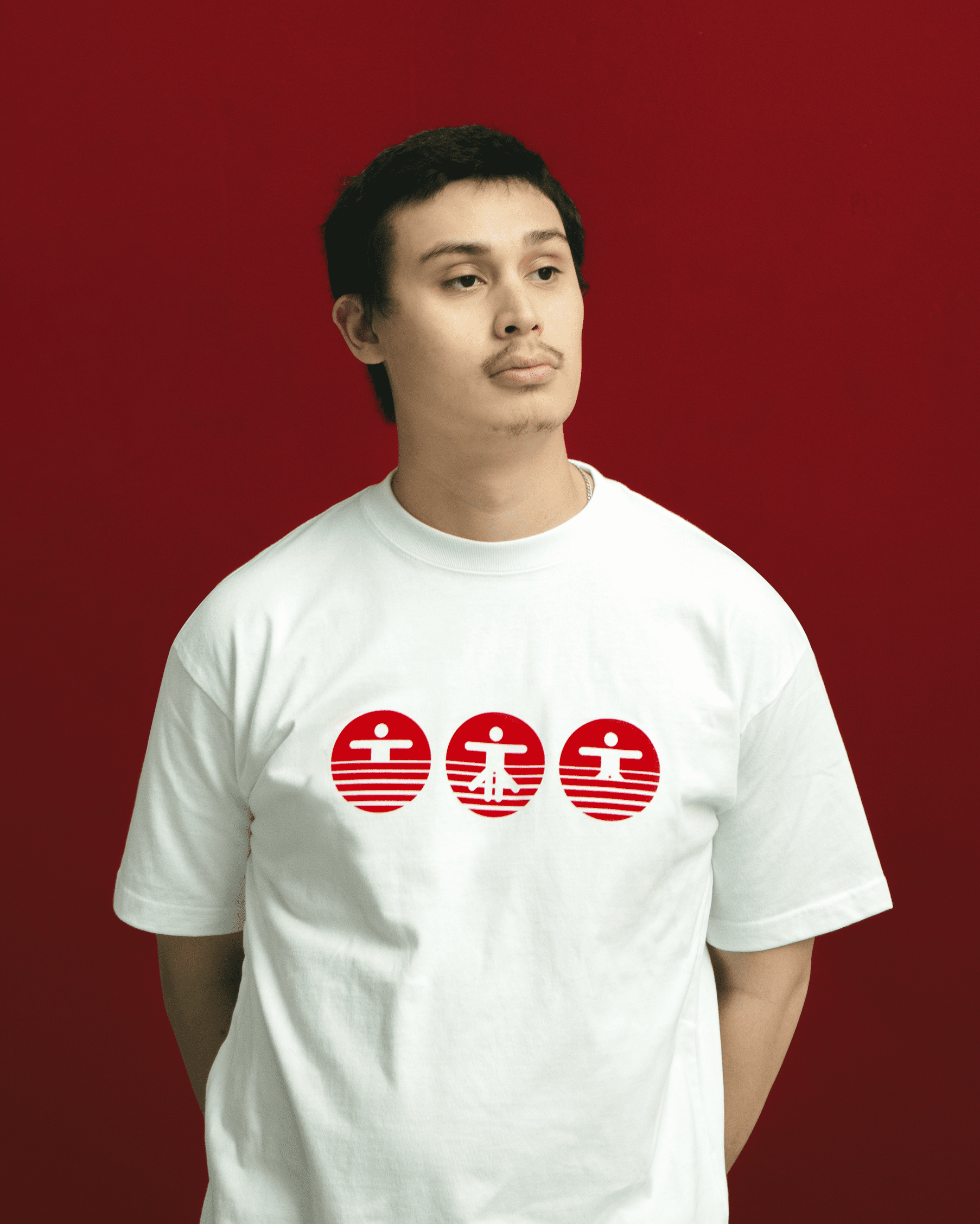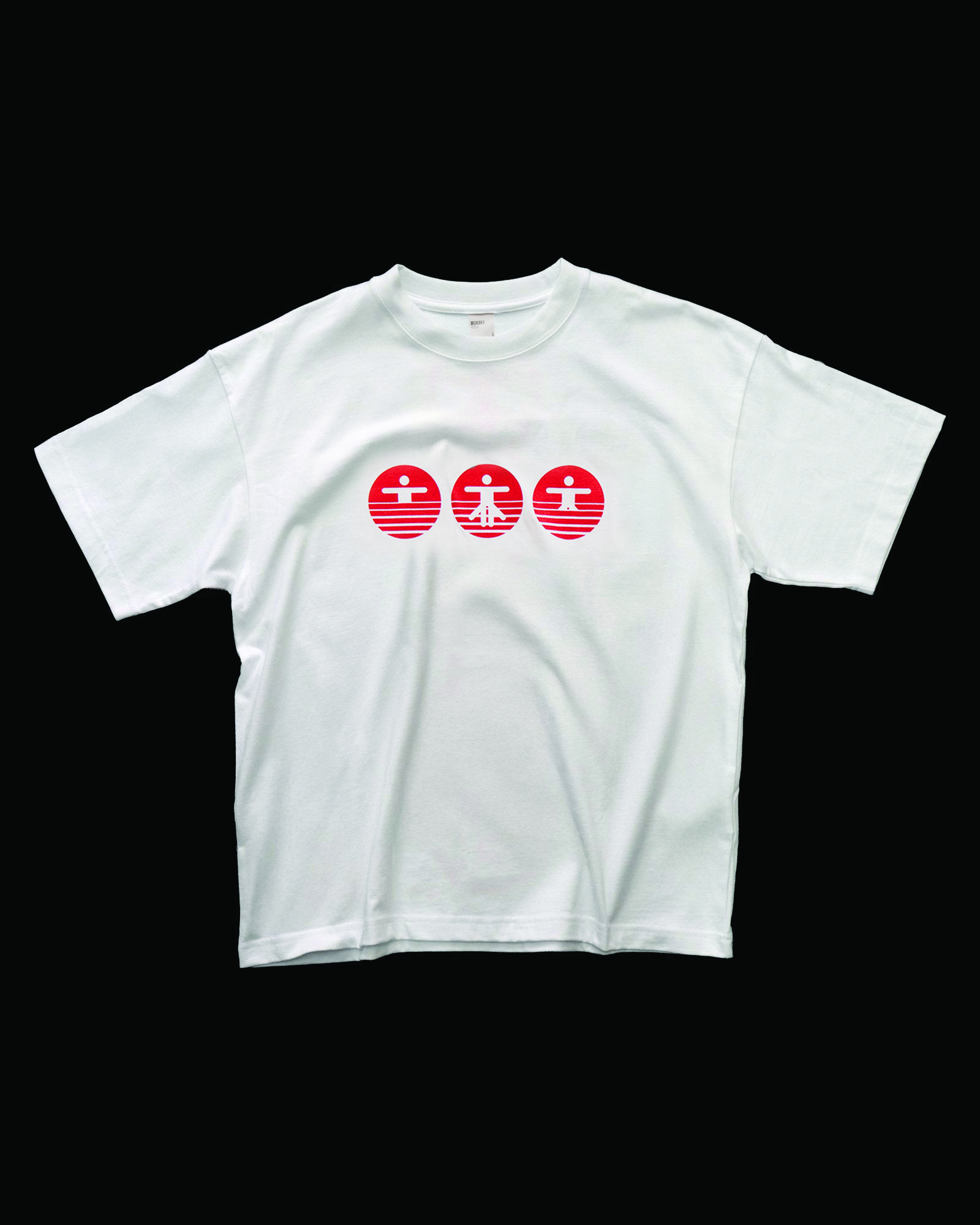 IN COLLABORATION WITH MUHAKU FOR OUR DEBUT NEW YORK POP UP ON APRIL 4TH 2026. TRI HORIZON SYMBOL, PLASTISOL PRINTED ON MUHAKU BLANKS.