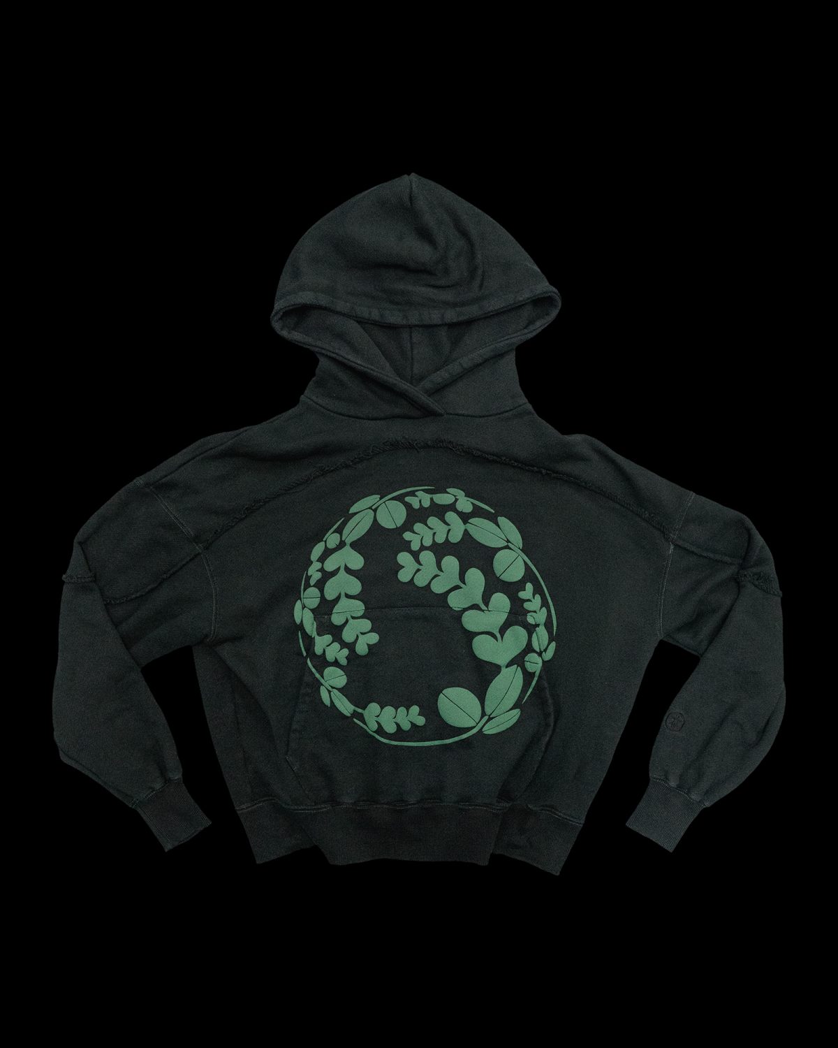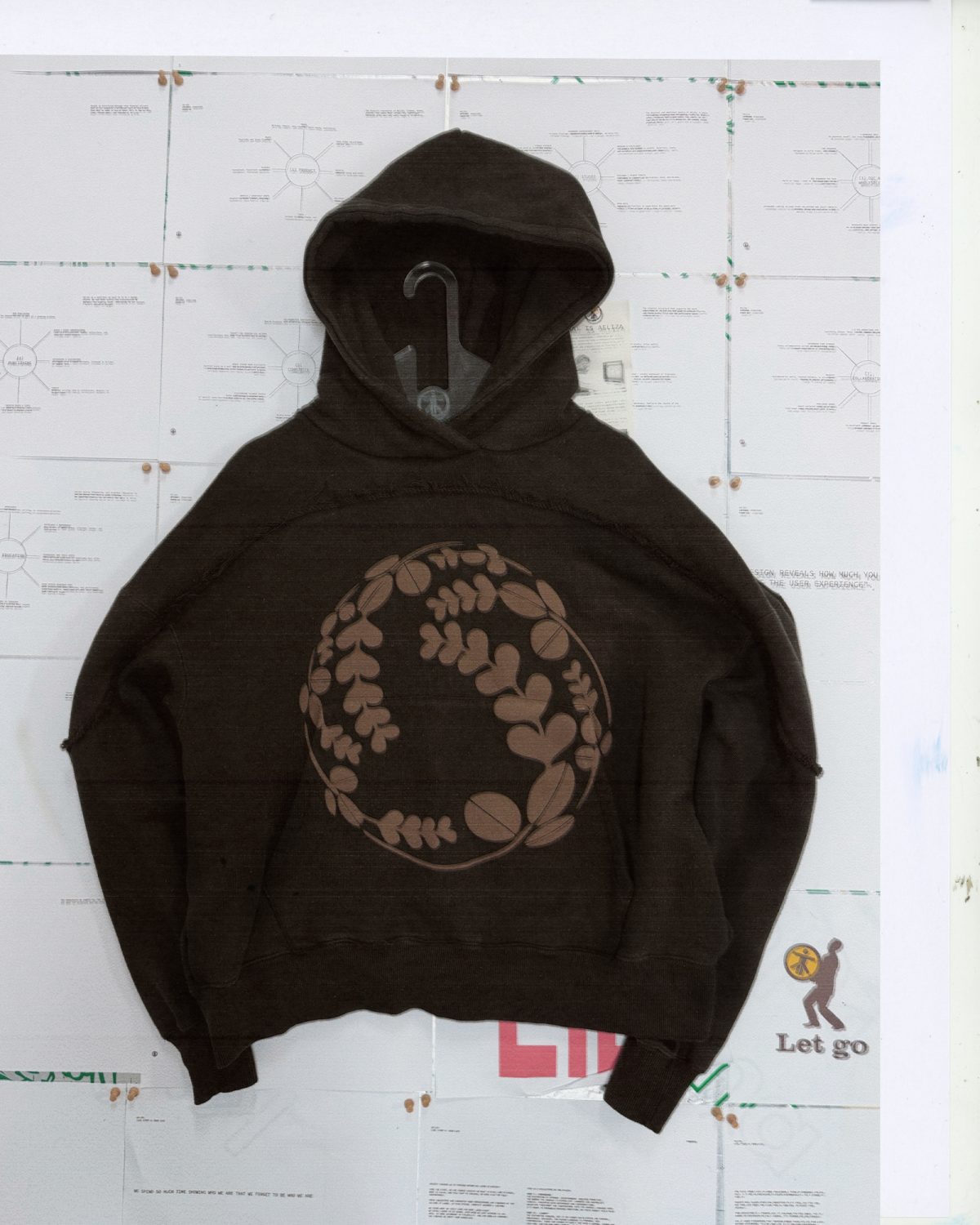 QUILTED LINING, DOUBLE ZIP CLOSURE, SNAP-FLAP WAIST POCKETS, AND A LEATHER NECK PANEL. EMBROIDERED SYMBOL AT THE BACK NECK, WITH AN ADDITIONAL SYMBOL ON THE INTERNAL STORM FLAP. APPLIQUÉD INDIVIDUAL SYMBOL ON THE FRONT, AND MIT-INSPIRED TYPOGRAPHY ON THE BACK, REFERENCING ELIZA (MIT, 1966). THIS WAS THE FIRST CASE STUDY 3 SAMPLE. SMALL LEATHER COLOUR DISCREPANCY ON THE CENTRE-LEFT MID SECTION. NECK LABEL READS “LARGE”, BUT FITS A TRUE MEDIUM.