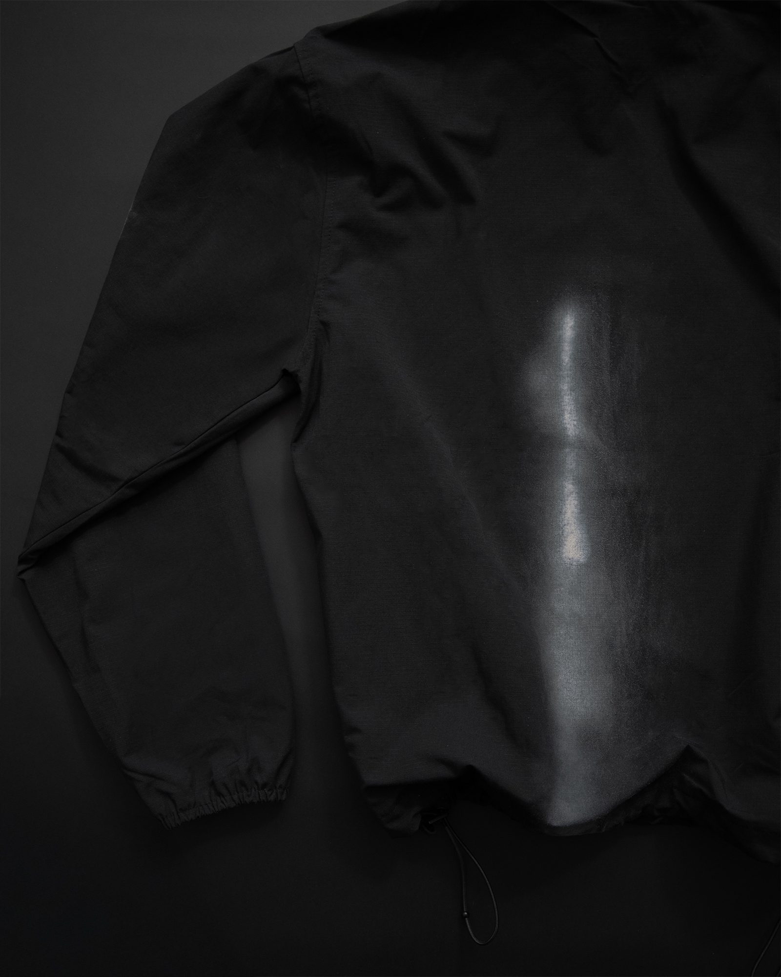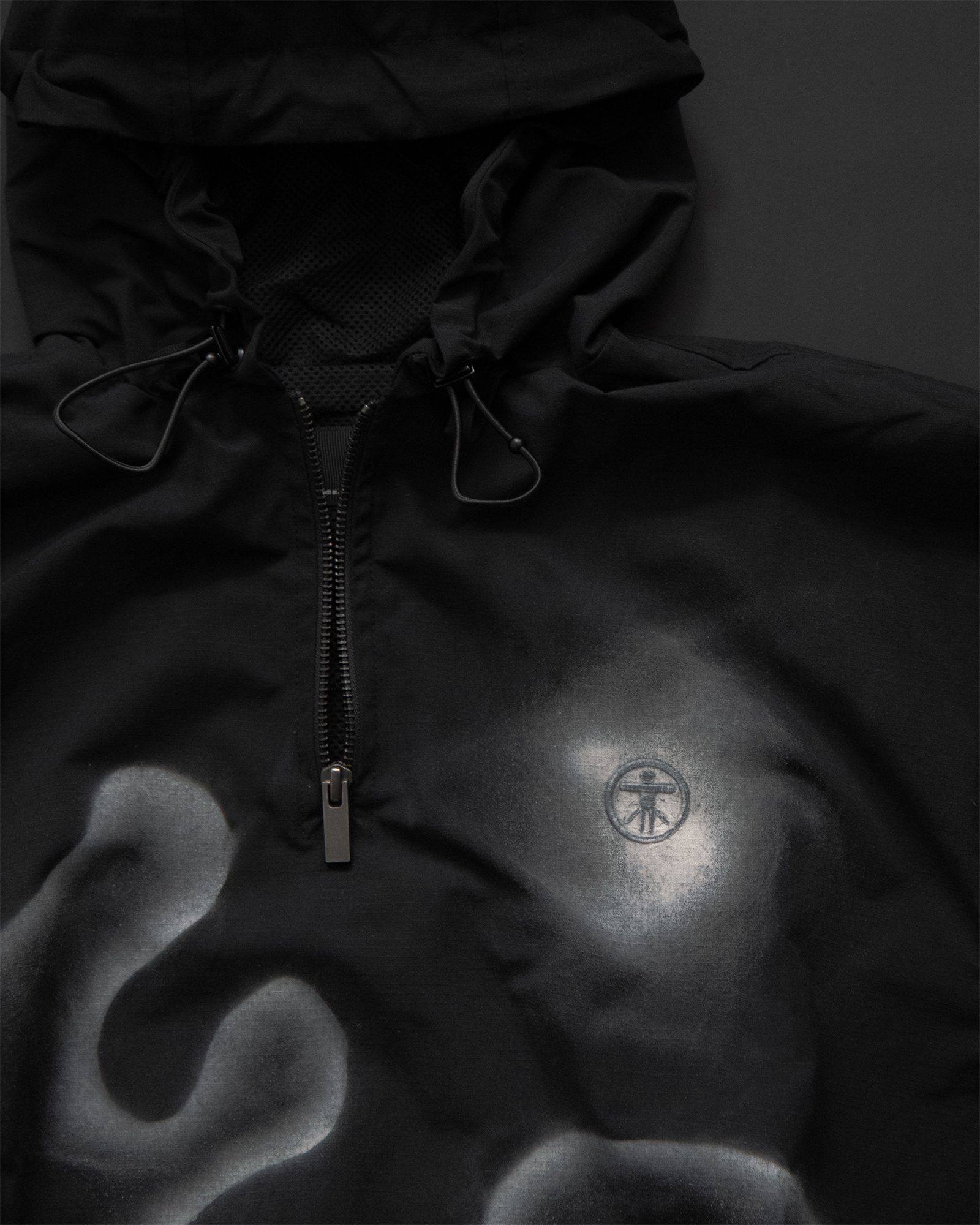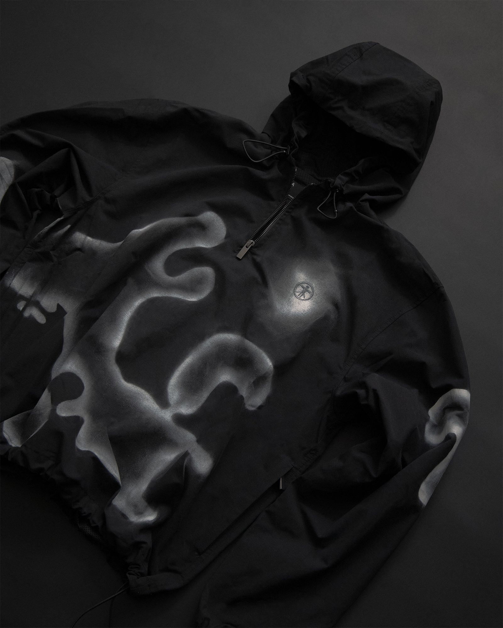 SOME THOUGHTS DON’T WHISPER; THEY DEMAND TO BE HEARD. THIS IS THE LOUDER ITERATION OF THE ORIGINAL SHELL, HAND-SPRAYED IN OUR LONDON STUDIO. RIPSTOP SHELL WITH MESH LINING, ADJUSTABLE HOOD AND HEM TOGGLES, AND A HIGH-GRADE DWR WATER-REPELLENT FINISH. THE SAME TECHNICAL BASE, EXPRESSED WITH MORE TEXTURE AND PRESENCE.